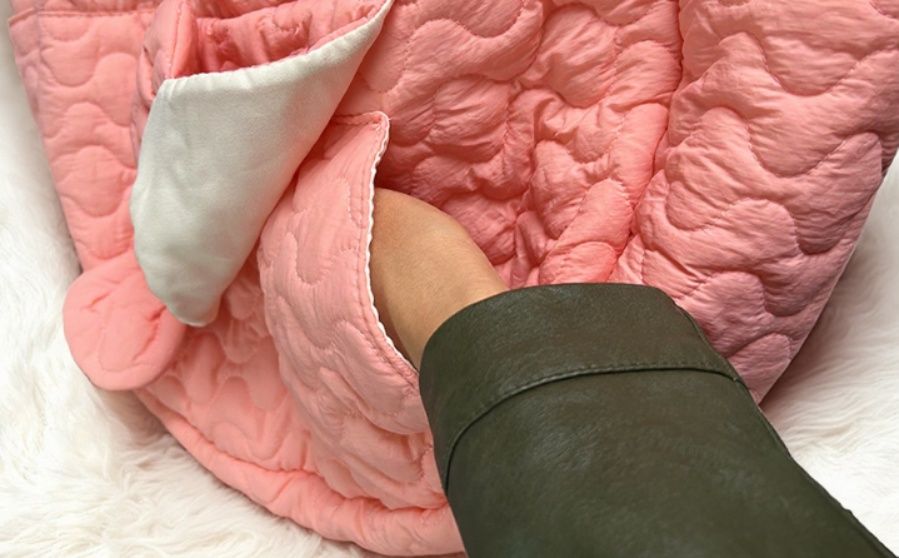 キルティング加工された柔らかな素材が愛犬を優しく包み込み、長時間の移動でも快適に過ごせます。