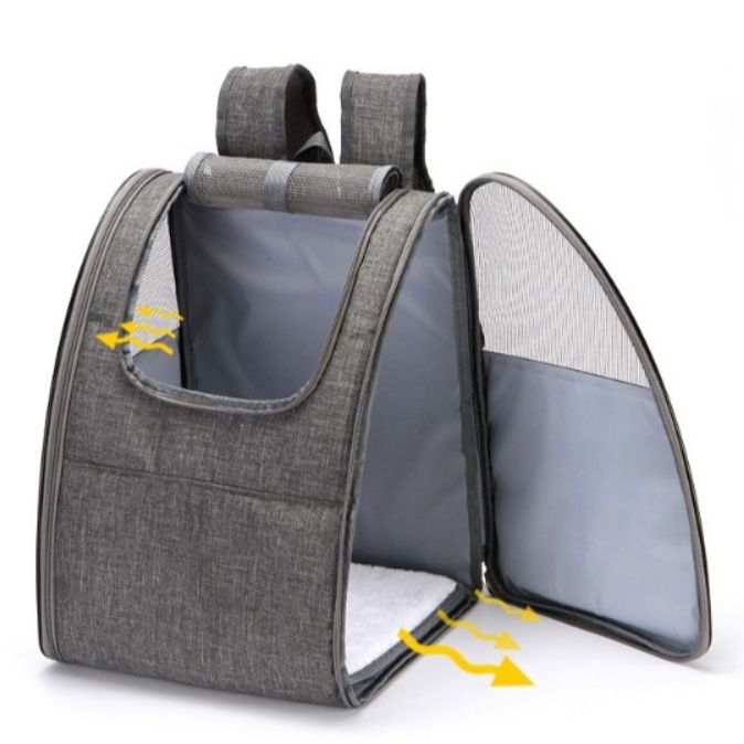 幅広の肩ベルトで長時間の移動も楽々、背負ったまま愛犬の様子が確認できる安心設計です。