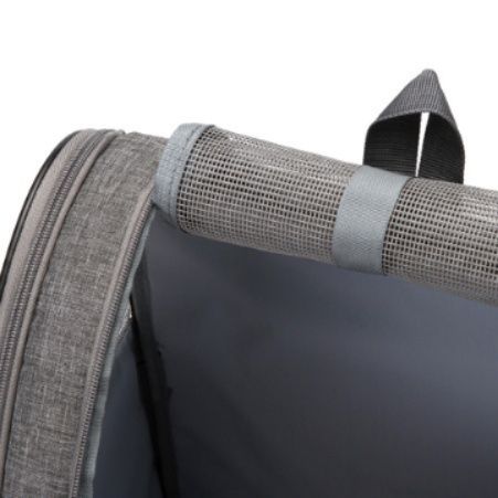 上部と側面に通気性の良いメッシュ窓を配置し、ペットの快適性を確保しました。