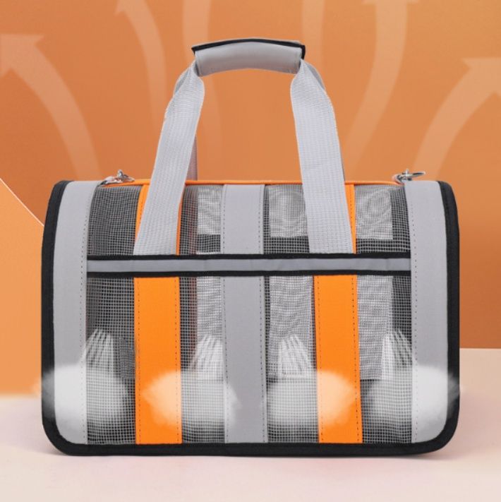 通気性に優れたメッシュ素材を採用した犬キャリーバッグです。