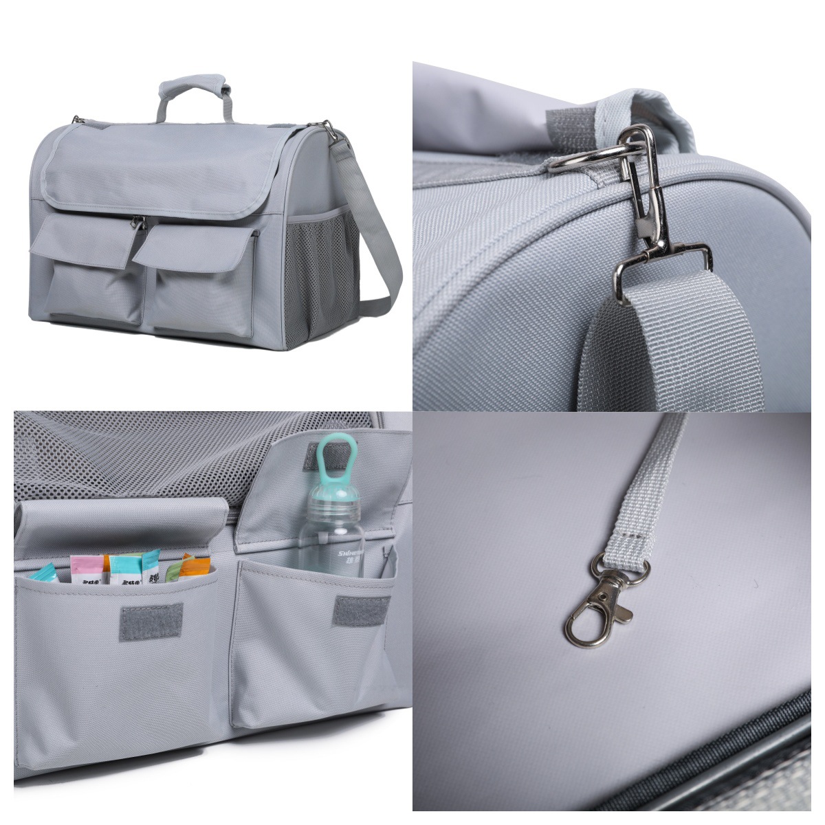 通気性に優れたメッシュ窓を両サイドに配置し、ペットが快適に過ごせる設計になっています。