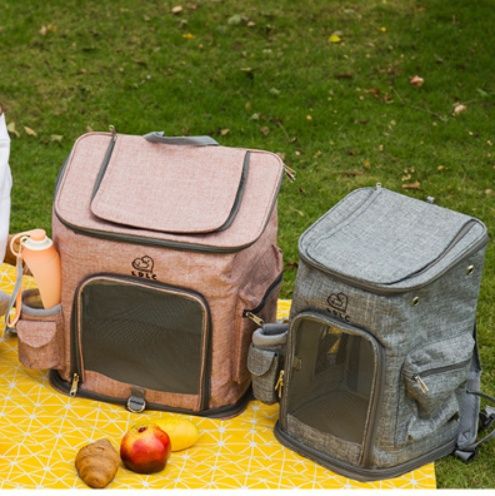 上部は透明窓付きで愛犬の様子を確認でき、サイドポケットも充実した収納力があります。